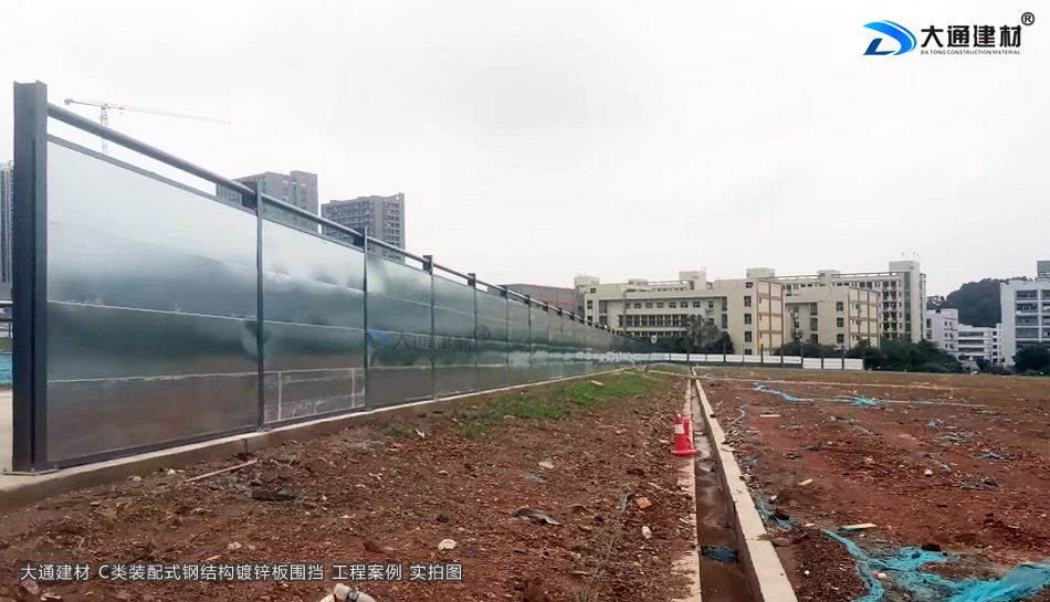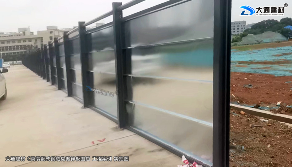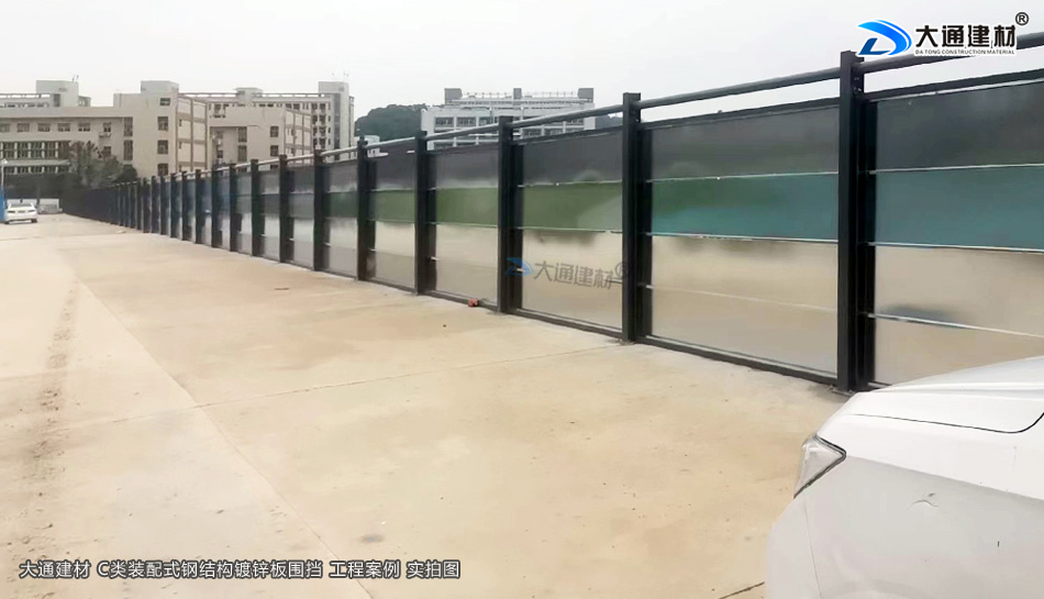 東莞建設工地項目工程選用大通建材鍍鋅鋼板圍擋2.4米高C款,新型的裝配式鋼結構圍擋,符合市政新標準、拆裝方便、結構牢固、抗風力達到10級、安全性高。