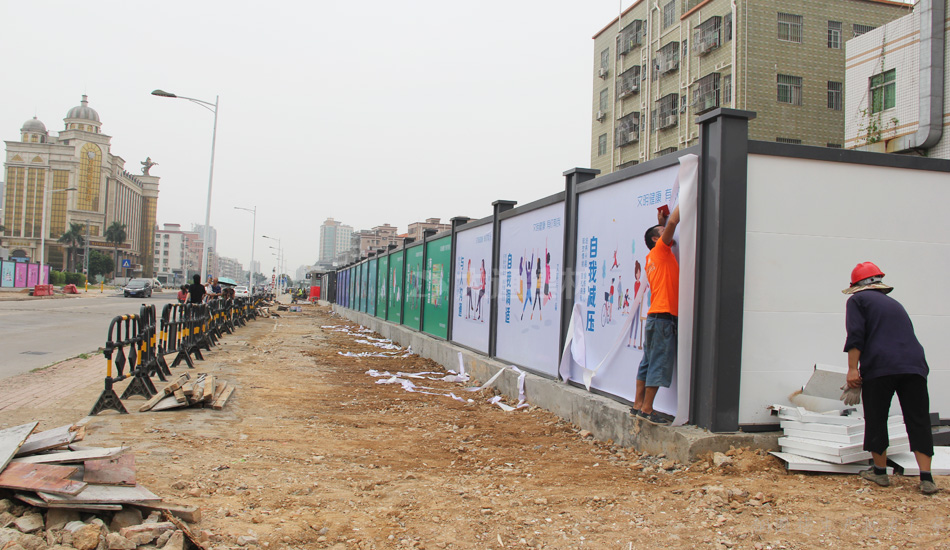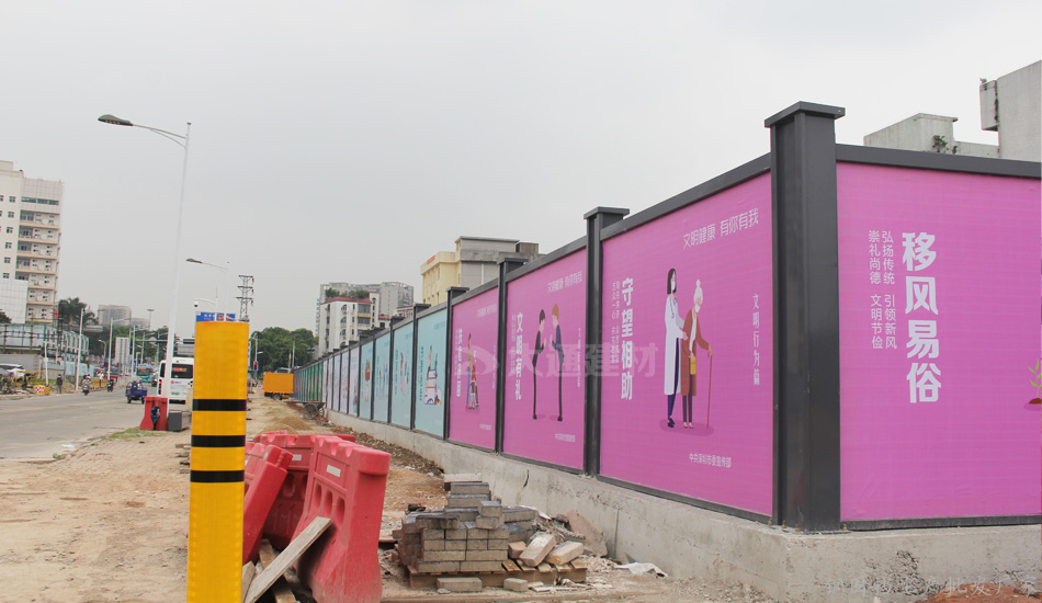 深圳新標(biāo)準(zhǔn)鋼圍擋 安全、綠色、美觀——堅(jiān)持深圳質(zhì)量,關(guān)注城市美學(xué),培育精益求精的工匠精神,結(jié)合深圳開放、創(chuàng)新、現(xiàn)代、濱海的城市的特征和公益宣傳的要求,在構(gòu)造形式統(tǒng)一的前提下,提供具備不同區(qū)域環(huán)境特點(diǎn)的外觀設(shè)計(jì)方案,并通過外觀裝飾使鋼結(jié)構(gòu)式圍擋和砌筑式圍擋形成統(tǒng)一的風(fēng)格;再結(jié)合城市區(qū)域特點(diǎn),分片區(qū)、分道路、分街景各自選用同類風(fēng)格圍擋,在營(yíng)造美觀、整潔的城市環(huán)境的同時(shí),實(shí)現(xiàn)圍擋風(fēng)格區(qū)域性的協(xié)調(diào)統(tǒng)一。