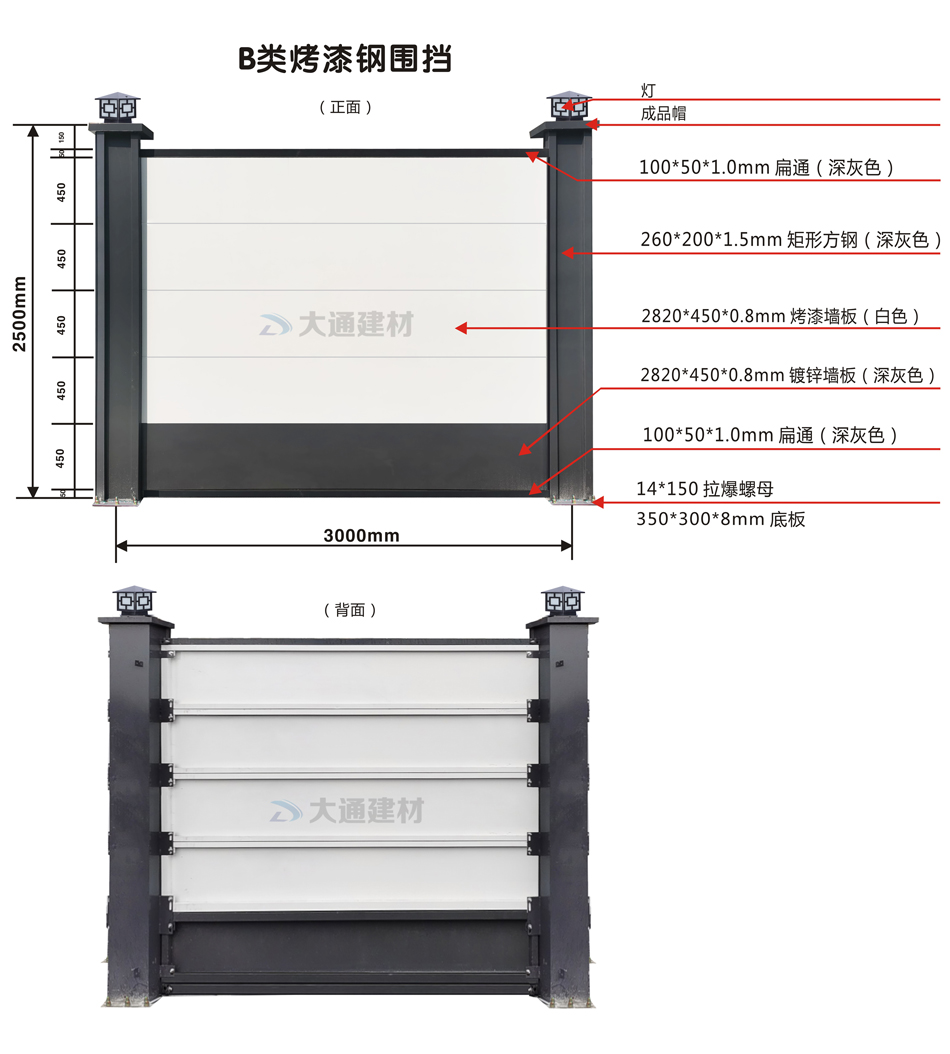 深圳市大通建材廠家生產(chǎn)的B類鋼結(jié)構(gòu)圍擋烤漆款產(chǎn)品參數(shù)