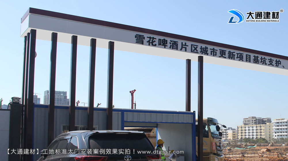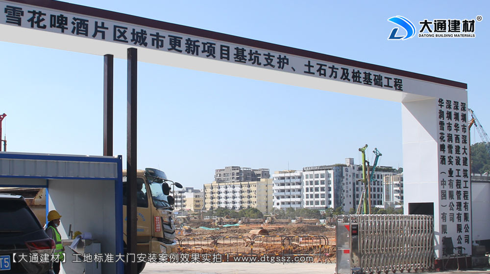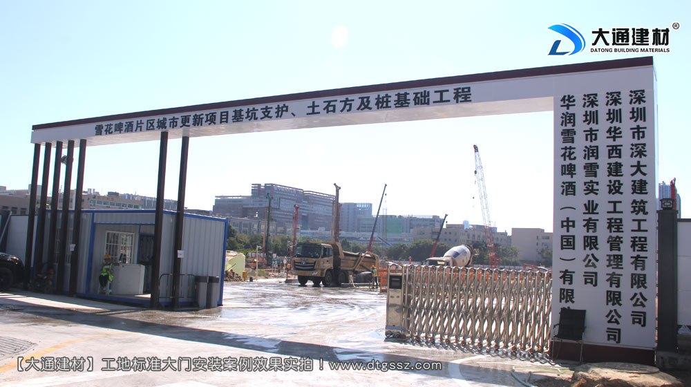 深圳雪花啤酒廠施工大門-基坑支護與土石方工程施工大門-工地大門-深圳市大通建材有限公司鋼圍擋生產(chǎn)定制廠家