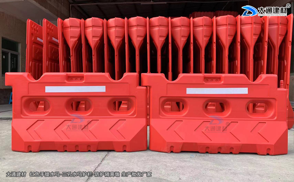 大通建材手提水馬又稱注水水馬、施工水馬、塑料水馬圍欄、塑料圍欄、塑料隔離欄、隔離水馬、交通水馬等,用于城市道路、公路、高速隔離、工地建設(shè)、施工地、收費(fèi)站、路口、廣場(chǎng)、商場(chǎng)引導(dǎo)隔離等地方 臨時(shí)分道路使用。