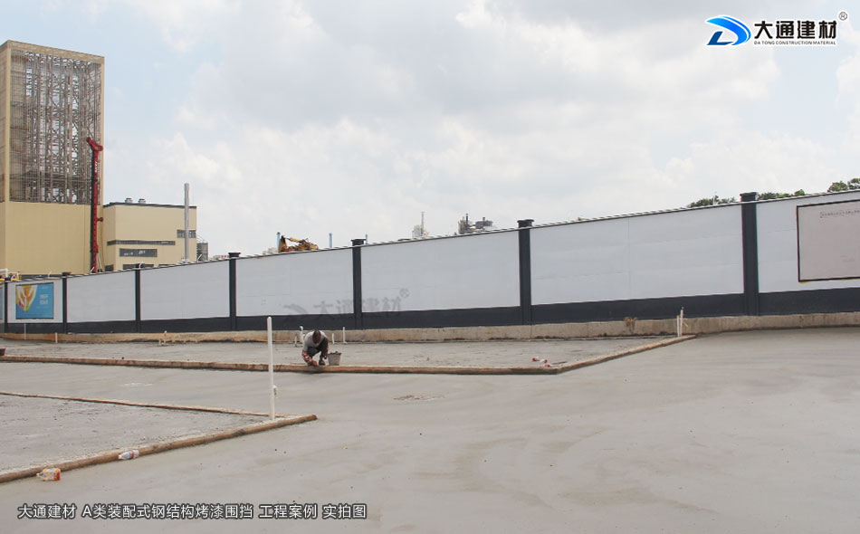 東莞東坑鎮工地臨時施工工程選用的是深圳市大通建材有限公司生產批發的鋼結構圍擋a類2.5米高半龍骨款 來對施工工地進行隔離防護