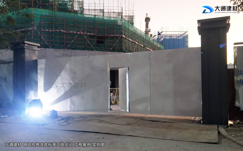 施工安全方案解決工程師,24小時在線等候您的咨詢!我們知道現在市政要求基本上每一個項目施工工地現場都需要安裝圍擋護欄后,方可施工,而施工現場工地大門基本是伴隨著施工圍擋存在的。今天大通小編與大家看看大通鋼結構烤漆款標準工地大門有哪些款式。