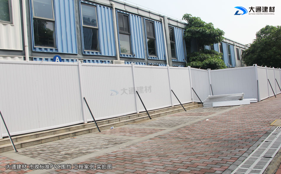 深圳大通建材PVC圍擋表面經(jīng)烤漆工藝噴涂、表面光滑,具有美觀環(huán)保、安全穩(wěn)固、經(jīng)久耐用等特點(diǎn),適合市政道路建設(shè)施工、地產(chǎn)工程項(xiàng)目建設(shè)施工、管網(wǎng)改造施工、路橋維護(hù)施工等工程選用。