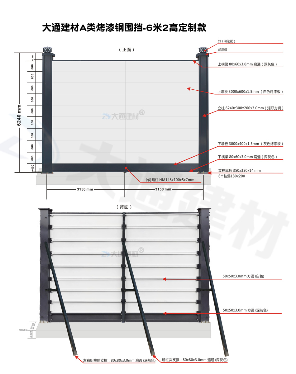 深圳大通建材生產的A類裝配式烤漆鋼圍擋全龍骨6米高定制款 適用于各種項目工程:如市政工程建設施工、房地產項目建設施工、地鐵修建項目施工、管網改造、小區改造、城市建設、道路修建施工等工程修施工外圍使用