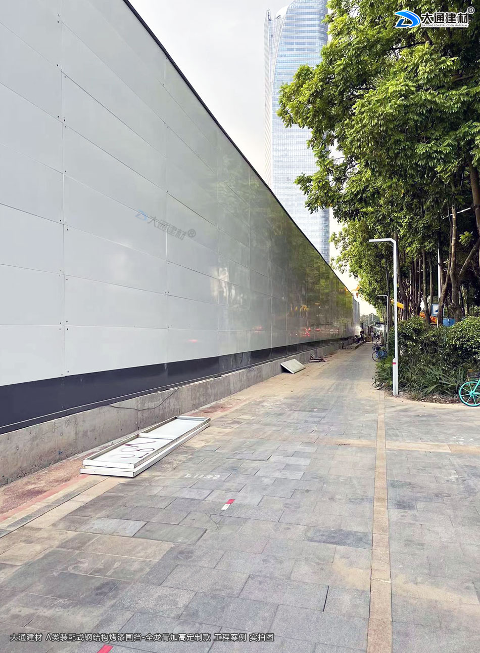 深圳大通建材A類裝配烤漆鋼圍擋采用鋼結構設計,更安全穩固,抗風能力更強,大多數能抵抗10級以上的風力,若圍擋的抗風能力弱的話就會容易因圍擋倒塌導致事故的發生。這款圍擋占用場地空間比較小,質量過硬,并且成本很經濟實惠,往往受到廣大用戶的喜愛。大通建材為客戶提供從圍擋設計、研發、生產、定制、配送、安裝到售后等一條龍的服務,值得信賴,可放心選購,更多“大通建材圍擋”詳情請致電咨詢13826562448 梁先生